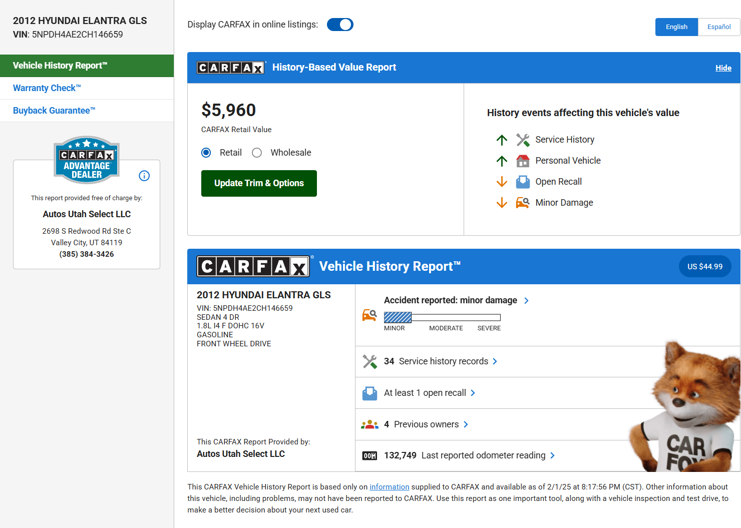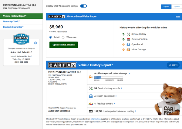 - Carfax disponible – Transparencia total sobre el historial del vehículo